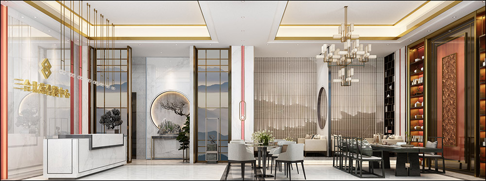 普洱三合北苑办公空间新中式风格装修效果图